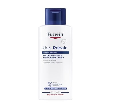Experience deep hydration and relief with Eucerin Urea Repair Plus 10% Urea Intensive Moisturizing Lotion, specially formulated for very dry, rough, and flaky skin. This dermatologist-recommended lotion delivers immediate and long-lasting moisture by replenishing the skin’s natural lipids and improving its barrier function. Enriched with Urea, Ceramides, and Natural Moisturizing Factors (NMFs), it effectively softens rough skin, smooths texture, and reduces dryness from the first use.
